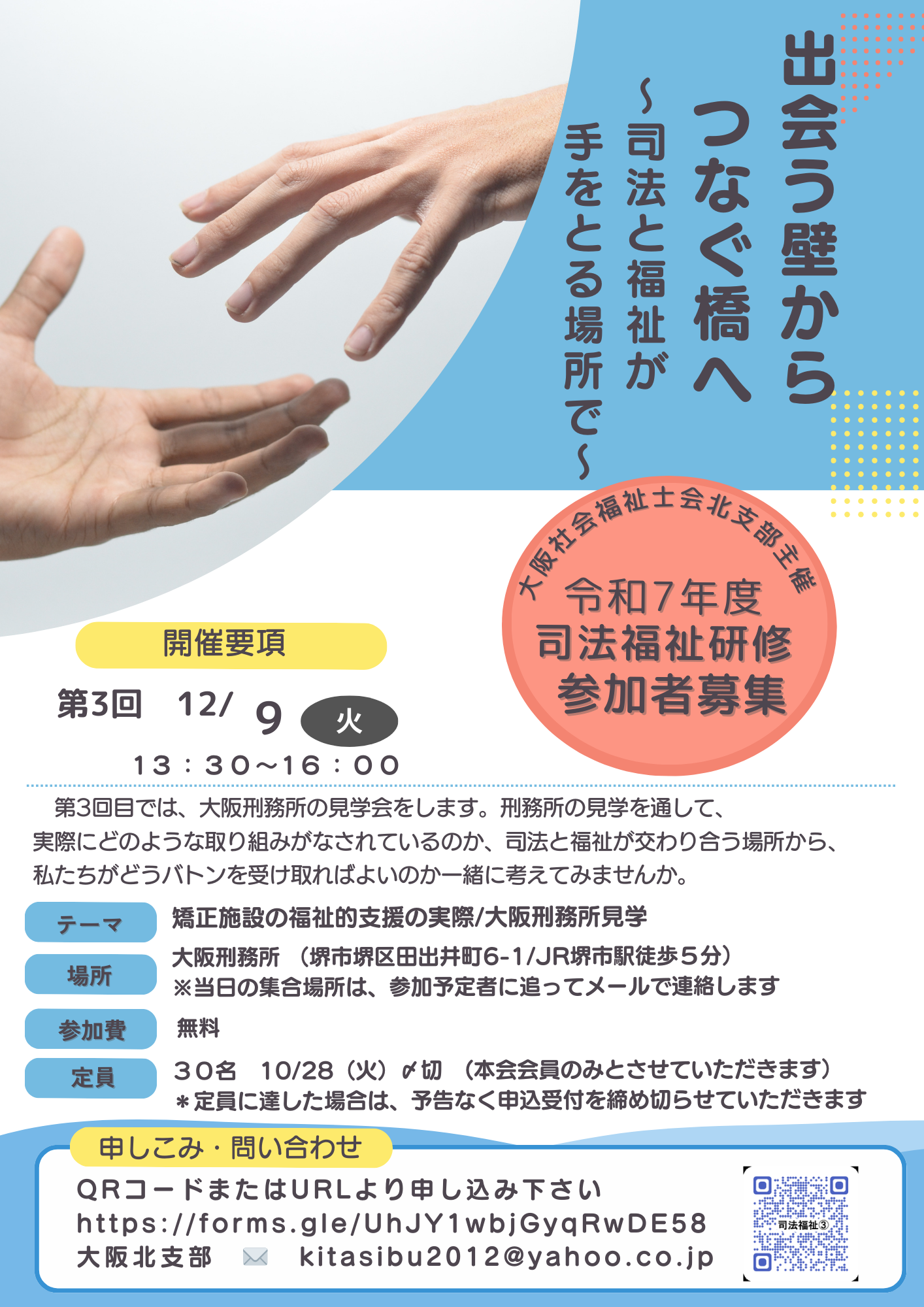 | 11/3 | 研修案内 | 大阪北支部 | 第二回司法福祉研修 出会う壁からつなぐ橋へ![]() |